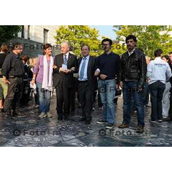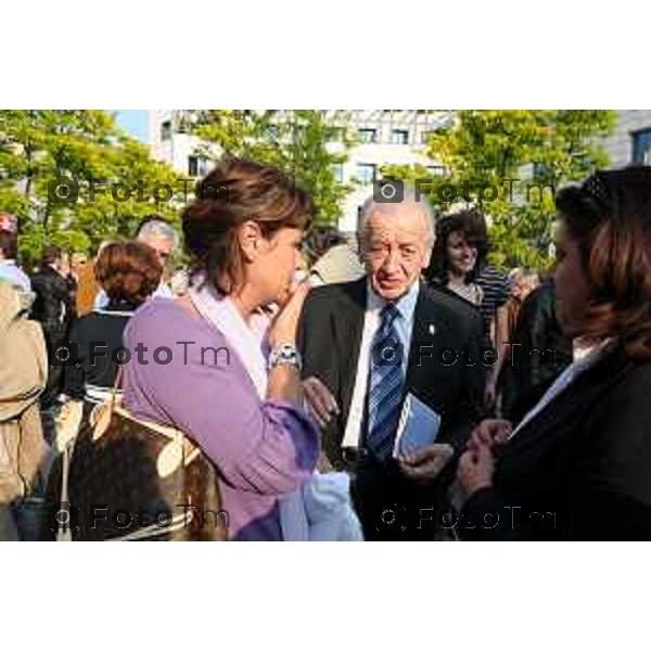 foto LaPresse Tiziano Manzoni (archivio Manzoni 03/2013 ) Cronaca Bergamo - ITALIA Il Bergamo Ermanno Olmi Regista BergamascoFerruccio De Bortoli Giornalista. in occasione dellìapertura nuova redazione locale Bergamasca Sotto il palco Al centro l\'allora sindaco Franco tentorio, alla sua sx l\'assessore alla cultura Sartirani e alla sua destra il giornalista Finazzi allora direttore redazione bergamasca sul palco olmi e De Bortoli